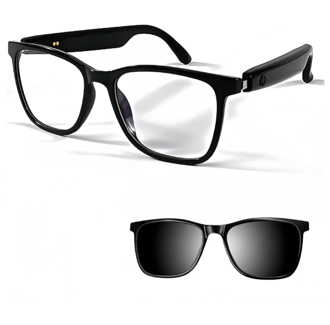 These 2-in-1 Bluetooth smart glasses let you switch seamlessly between polarized sunglasses and blue light blocking lenses with magnetic snap-on design. Whether indoors at the office or outdoors in the sun, the ultra-light, flexible frame ensures comfort all day. One pair, two functions—designed for men and women alike.