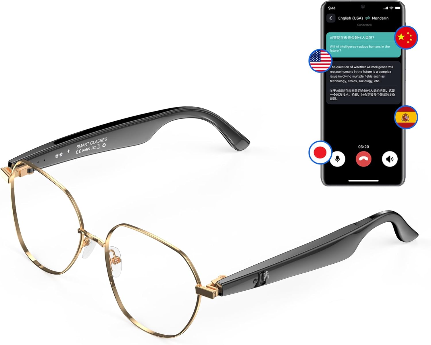 【Bluetooth Translation Glasses – Supports 163 Languages】