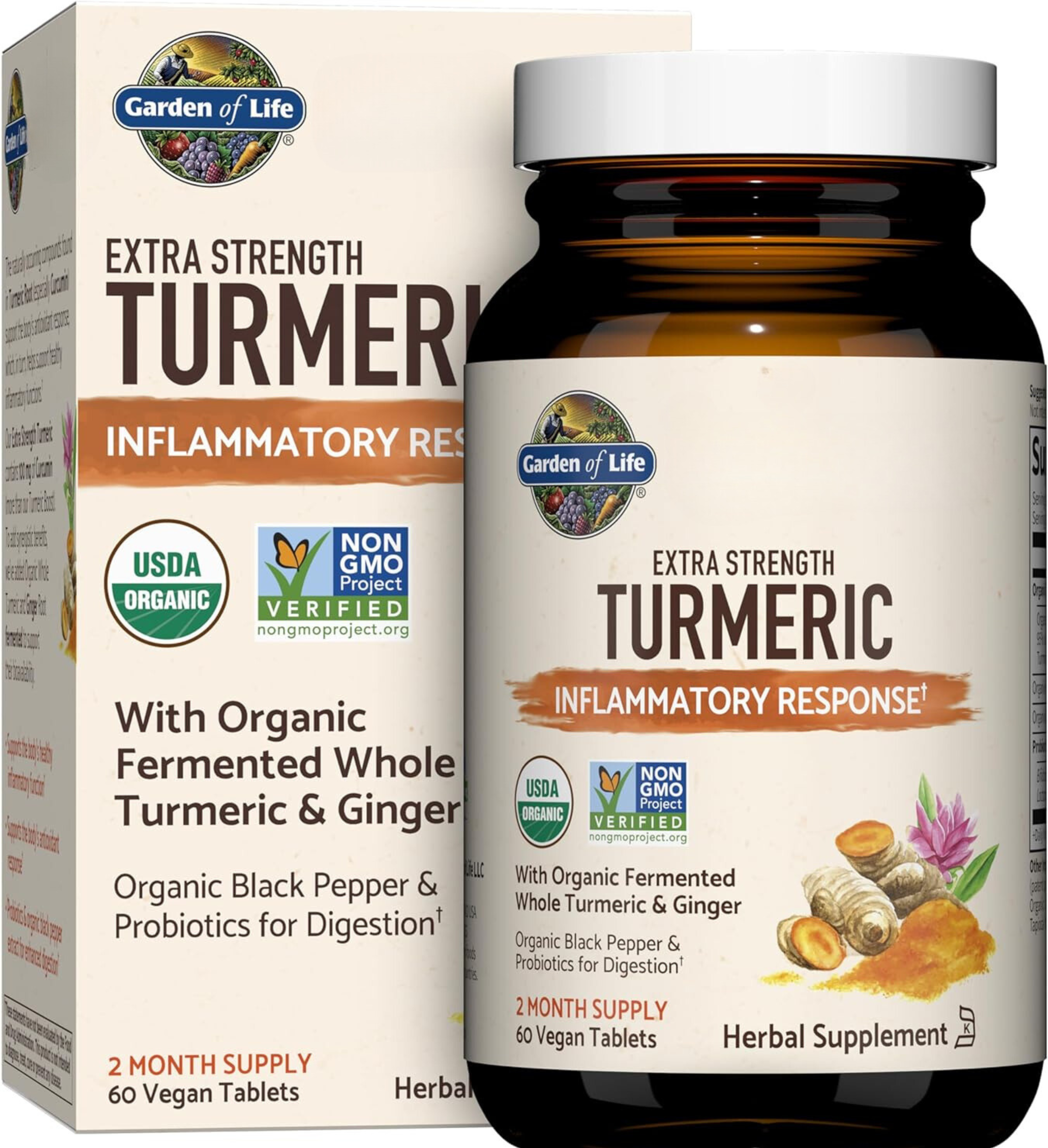 Garden of Life Extra Strength Turmeric Inflammatory Response 60 Tablets-100mg Curcumin (95% Curcuminoids) Black Pepper, Probiotics, Non-GMO Vegan Gluten Free Herbal Supplement