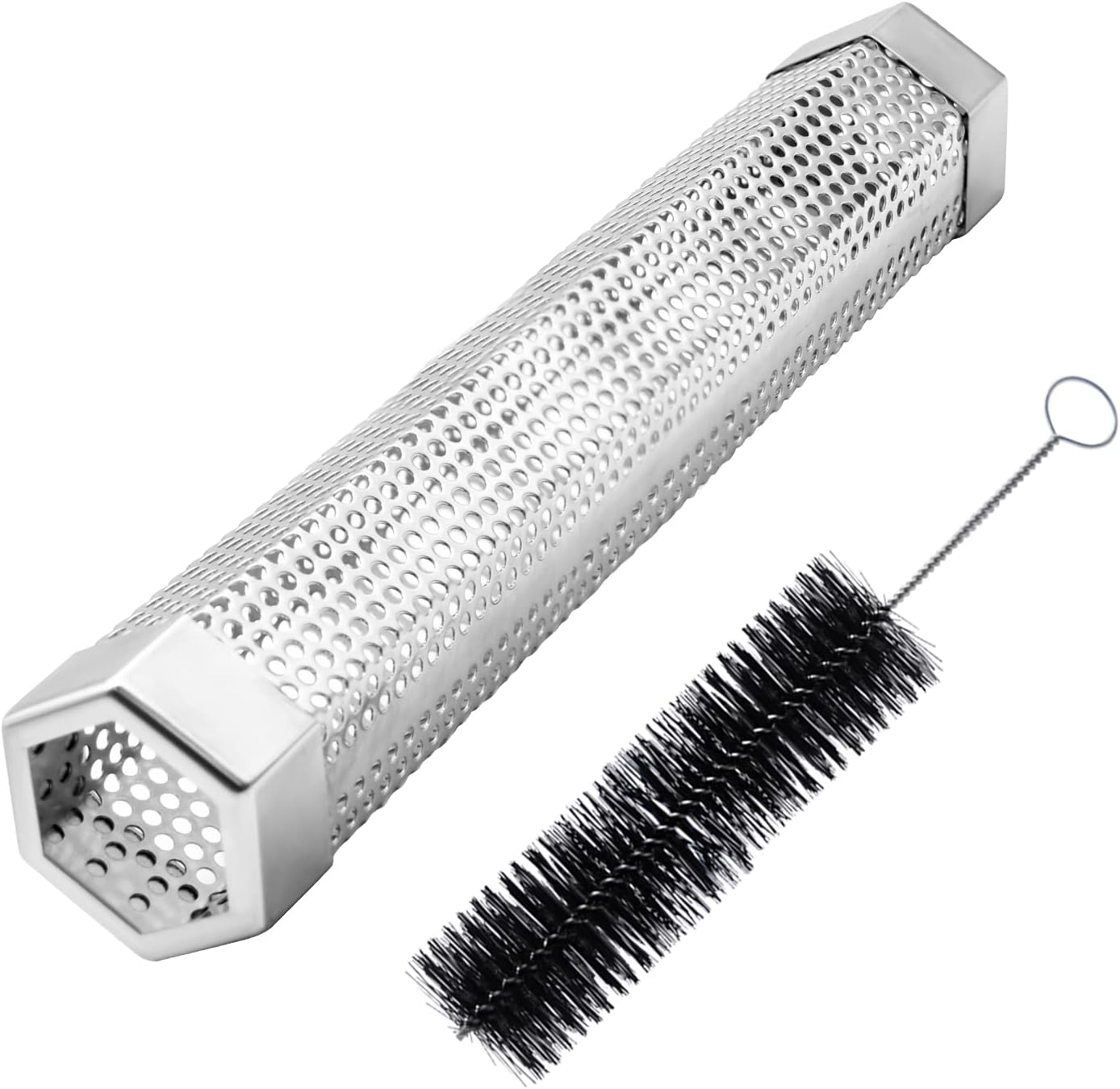 Pellet Smoker Tube, 12'' Smoker Tube with Brush, Premium Stainless Steel BBQ Wood Pellet Tube Smoker, 5 Hours of Billowing Smoke Tube Smoker for All Grill, Smoker, Cold/Hot Smoking