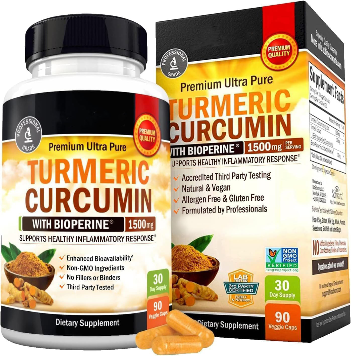 Turmeric Curcumin with Black Pepper Extract 1500mg - High Absorption Ultra Potent Turmeric Supplement with 95% Curcuminoids and BioPerine - Non GMO Turmeric Capsules for Joint Support - 90 Capsules